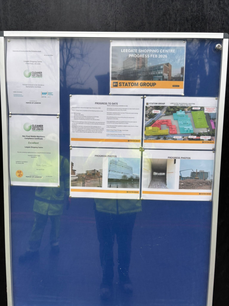 London Square has also fulfilled its promise to erect a bulletin board on the outside hoarding, carrying updates on progress.