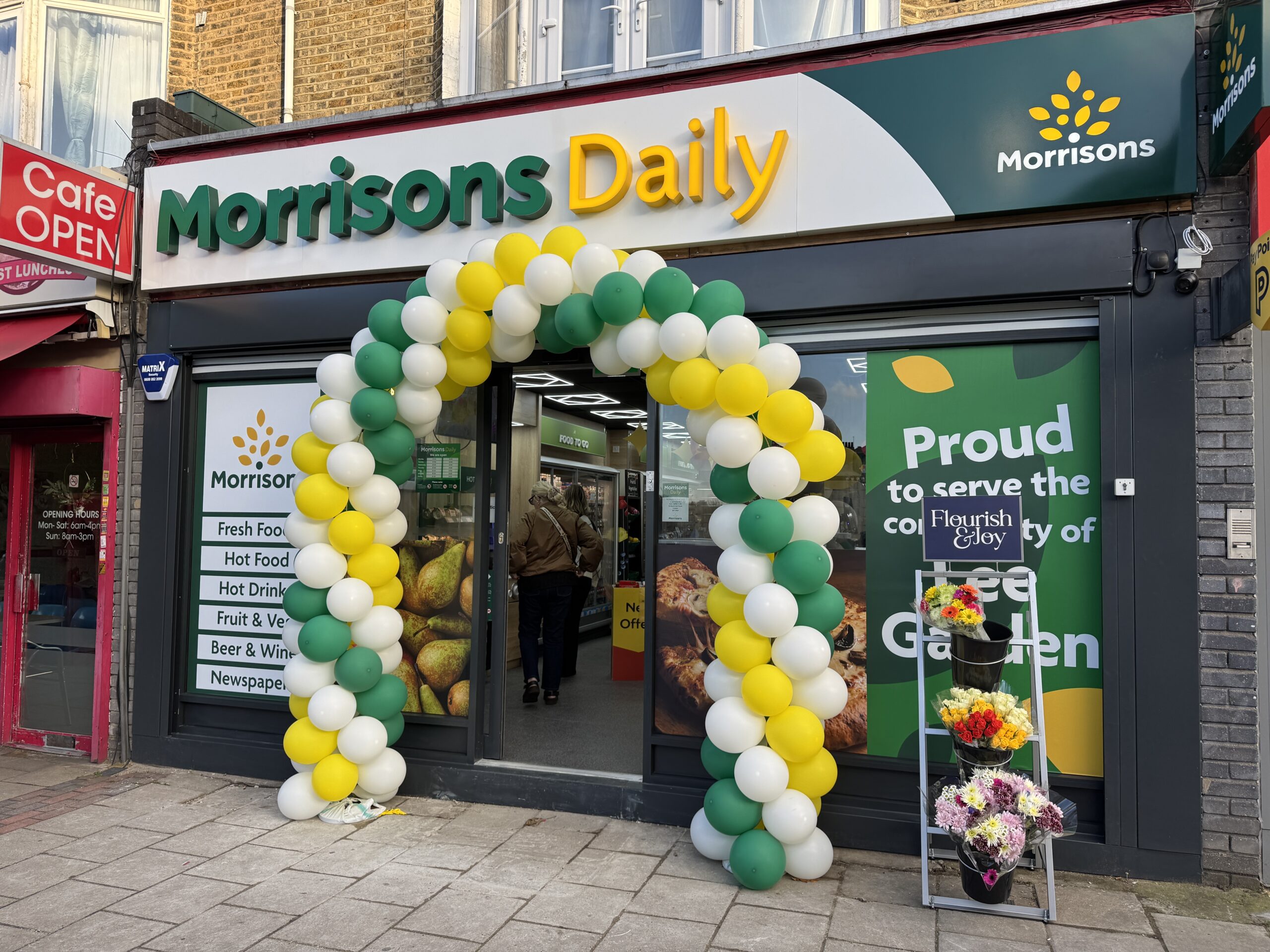 The new Morrisons Daily has opened, festooned with balloons, in the premises previously occupied by the Lee Off-Licence.