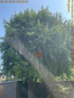 REASON: Neighbouring tree branches encroaching into client’s garden, work to be done from client’s garden. T1 located on unadopted land.