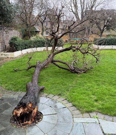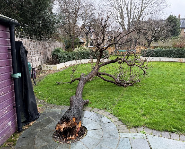Reason: dead and fallen. Duty to replace applies. A mature plum tree in our garden appears to have fallen naturally. The tree is currently lying on the ground in a stable and safe position and does not present an immediate risk to people, neighbouring properties, or access.