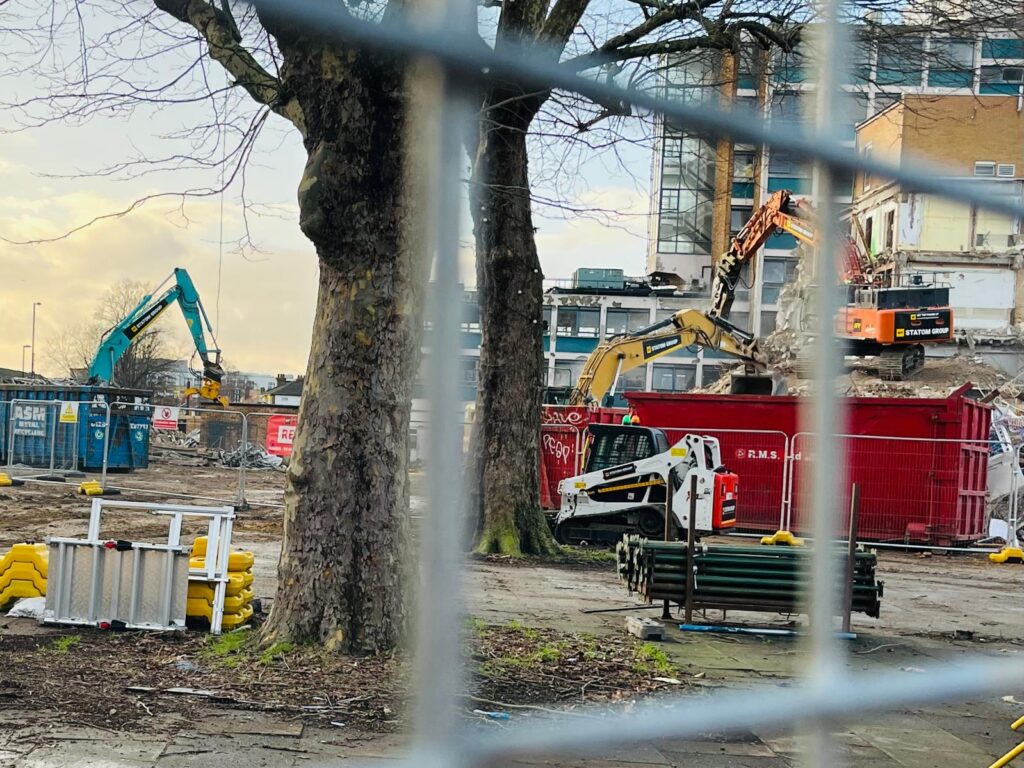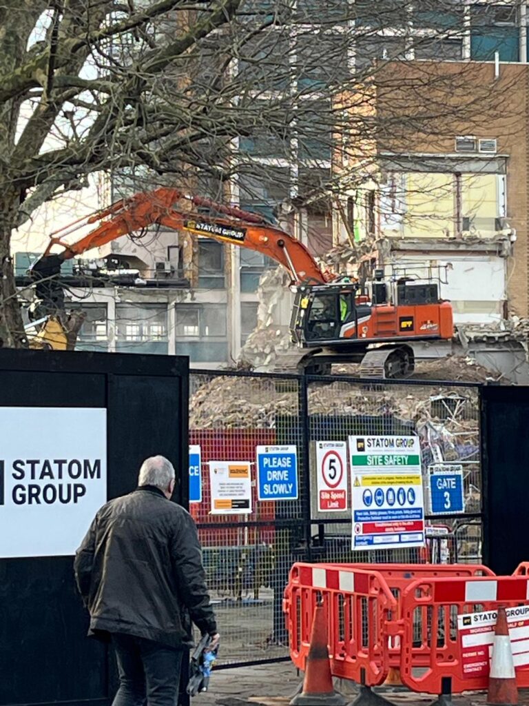 London Square’s project director of the Leegate development told a packed public meeting at Lochaber Hall on Wednesday that the demolition phase is expected to be completed by the summer. He also confirmed to the Lee Manor Society that all asbestos on the site has now been removed.