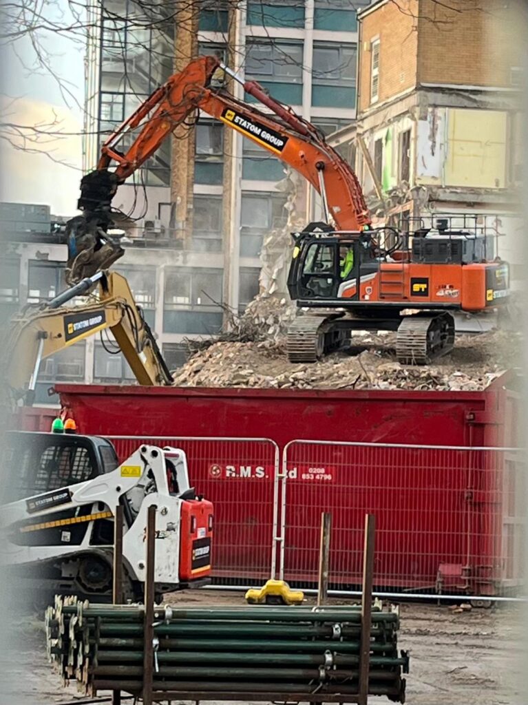 Mr Pritchard also explained that much of the material from the old buildings, once demolished, would be used for “crush” or hardcore as part of the foundations of the new development. All the debris from the demolition is sorted into different coloured bins. London Square has targets for the amount of material which is recycled.