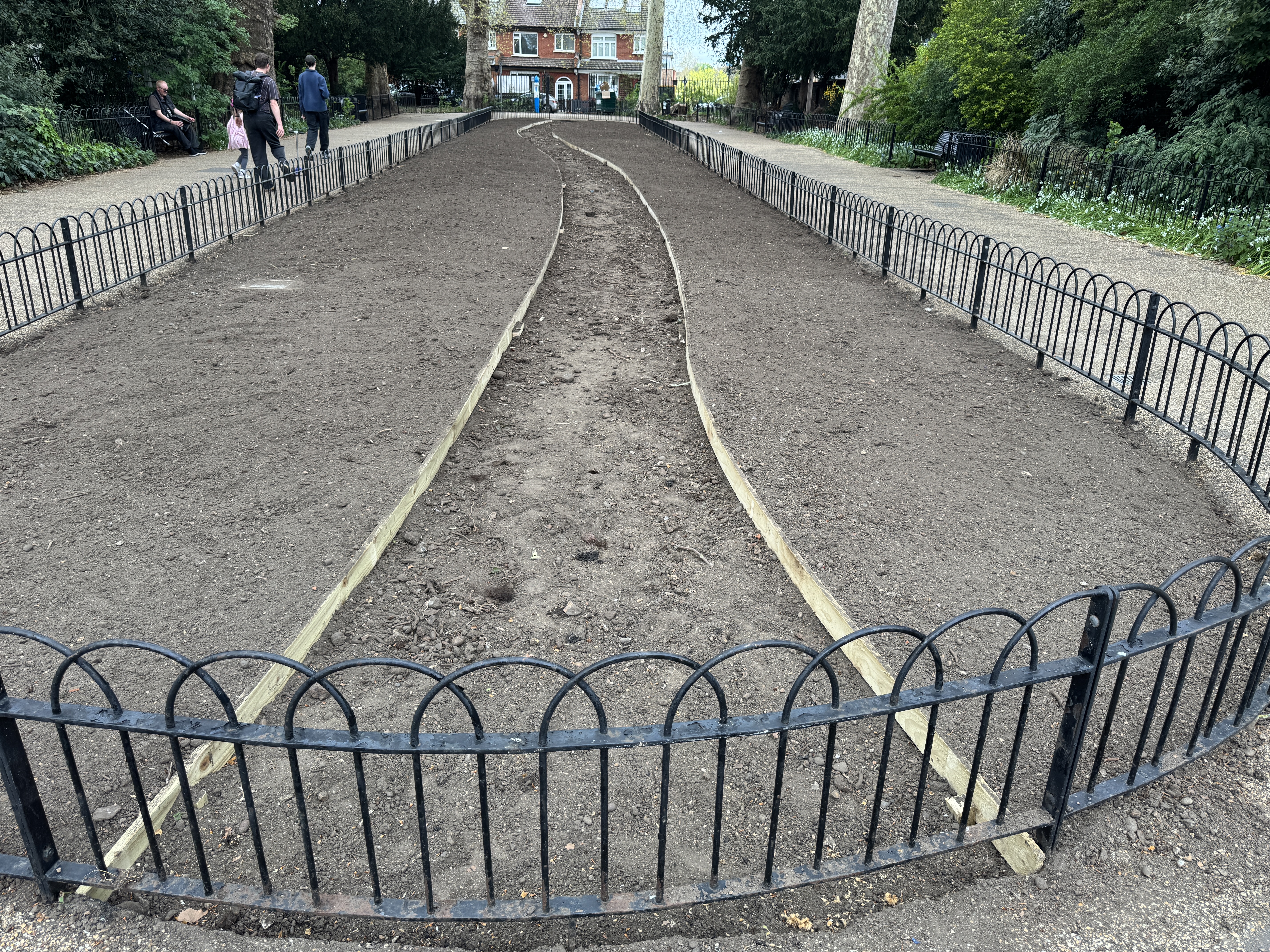 In the photo immediately above you can see the new central path taking shape. It’s designed to allow visitors to smell and touch the plants on both sides. There will be an emphasis on sustainability and drought resistance.