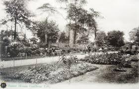 This is how the Cafe Bed and the Big Bed looked 100 years ago. Manor House Library is just visible through the trees.